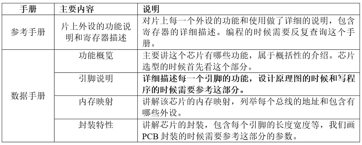 在开发时,有两个官方资料需要我们实时查询,一个是参考手册(Reference manual),另一个是数据手册(Data Sheet)。两者大致区别在于,数据手册用于芯片选型及原理图设计,参考手册用于编程时查阅。两者具体区别如下: